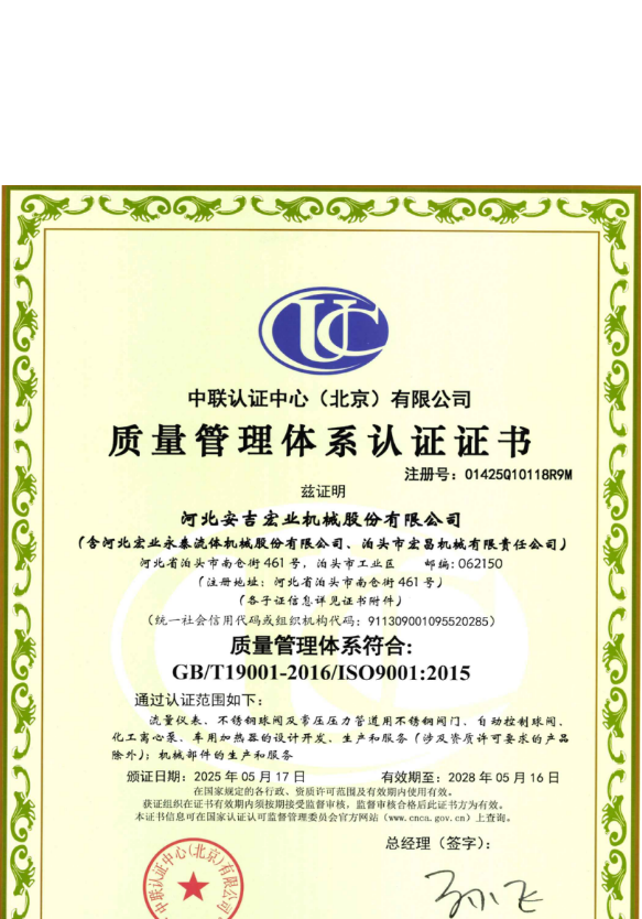 河北宏業(yè)永泰流體機(jī)械股份有限公司(原泊頭儀表總廠),生產(chǎn)流量儀表產(chǎn)品有三十多年的歷史。參加了節(jié)流裝置國家標(biāo)準(zhǔn)GB/T2624-1981的起草工作。公司占地12萬平方米,注冊(cè)資金3500萬元。主要產(chǎn)品有節(jié)流裝置、儀器儀表、各類不銹鋼閥門、各種化工離心泵。公司取得了ISO9001:2015質(zhì)量體系認(rèn)證、挪威船級(jí)社CE認(rèn)證、出口產(chǎn)品Emark認(rèn)證、特種設(shè)備制造許可證等。同時(shí)河北宏業(yè)永泰還是中石化物資供應(yīng)商網(wǎng)絡(luò)成員,取得了中石油、中海油物資供應(yīng)商準(zhǔn)入證,是中國神華集團(tuán)、華電集團(tuán)、大唐集團(tuán)、中廣核等公司合格供應(yīng)商。產(chǎn)品出口日本、阿爾及利亞等國家。